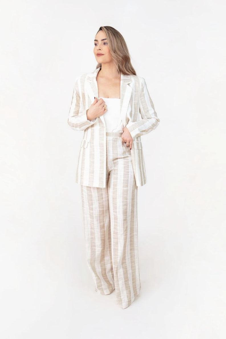 espectacular set a rayas con un toque playero en tela fresca, ideal para un look elegante sin dejar de lado la comodidad, detalle en cinto con pequeñas cuentas del mar.